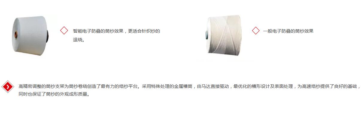 該機型具有先進(jìn)的電子信息技術(shù),智能化控制捻結循環(huán),通過(guò)機、電、儀、氣的一體化設計理念,實(shí)現了符合國家推廣的節能減排,機器人替代人的現代化高端紡機裝備。